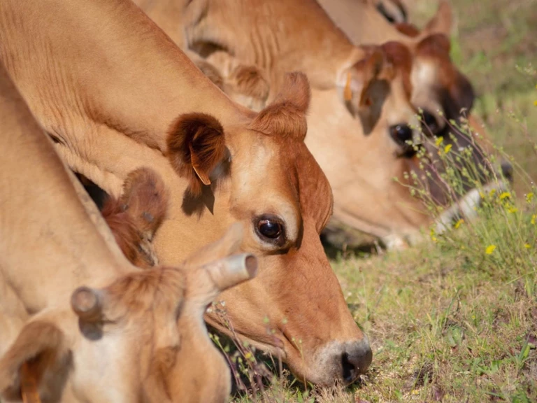 le troupeau des vaches laitière est composé de jersiaise pur et vaches croisée (simentale, monbeliarde, normande, pie rouge des plaine, rouge scandinave,...)